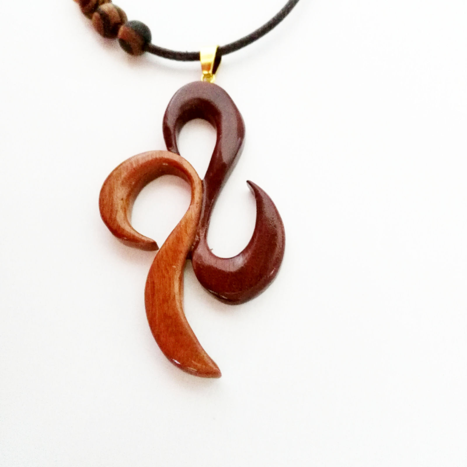 این گردنبند از چوب عناب ساخته شده است.طراحی این گردنبند مناسب برای استفاده خانم ها و آقایان می باشد.در ساخت این گردنبند از دو قسمت تیره و روشن چوب استفاده شده است.یک کار خاص، زیبا ودست ساز می باشد. برای پوشش روی کار از روغن گیاهی ازمو استفاده شده است.