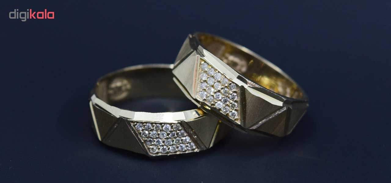 در باور عموم حلقه ی ازدواج نمادی از عشق و علاقه ی عروس و داماد به یکدیگر است. زیرا حلقه دایره ای شکل است و انتها ندارد و نمادی از بی انتهایی علاقه ی عروس و داماد به یکدیگر است.و از محصولاتی است که تقریبا همیشه و در طول روز مورد استفاده قرار میگیرد است بنابراین مقاوم و ساده بودن و زیبایی سه رکنی است که در انتخاب حلقه باید توجه کرد.همانطور که مشاهده میکنید حلقه ست فوق دارای نگین های جواهر(الماس طبیعی با تراش برلیان)میباشد که زیبایی این محصول را دوچندان کرده است.کالای فوق به صورت دو عدد و با سایز بزرگتر برای آقایان به نسبت خانم ها میباشد.